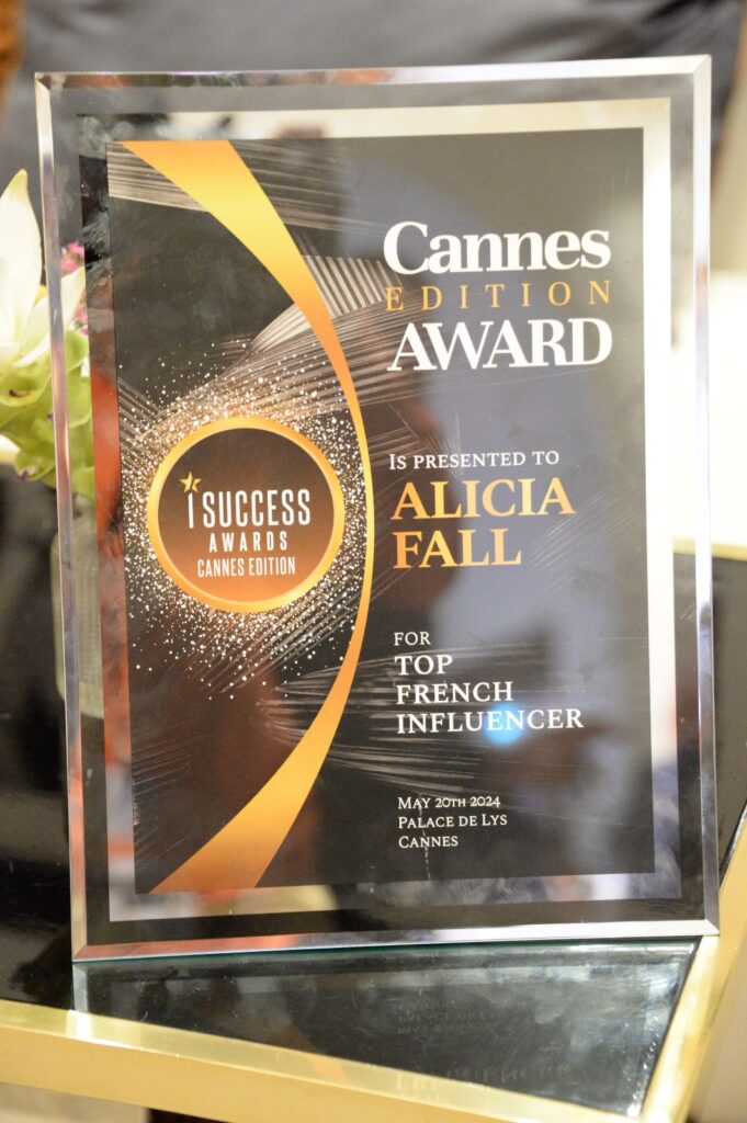 C’est dans le cadre prestigieux du festival de Cannes que la talentueuse Alicia Fall a été récompensée par le prix I Success International Awards, reconnaissant ainsi son parcours exceptionnel en tant que présentatrice TV et entrepreneuse.