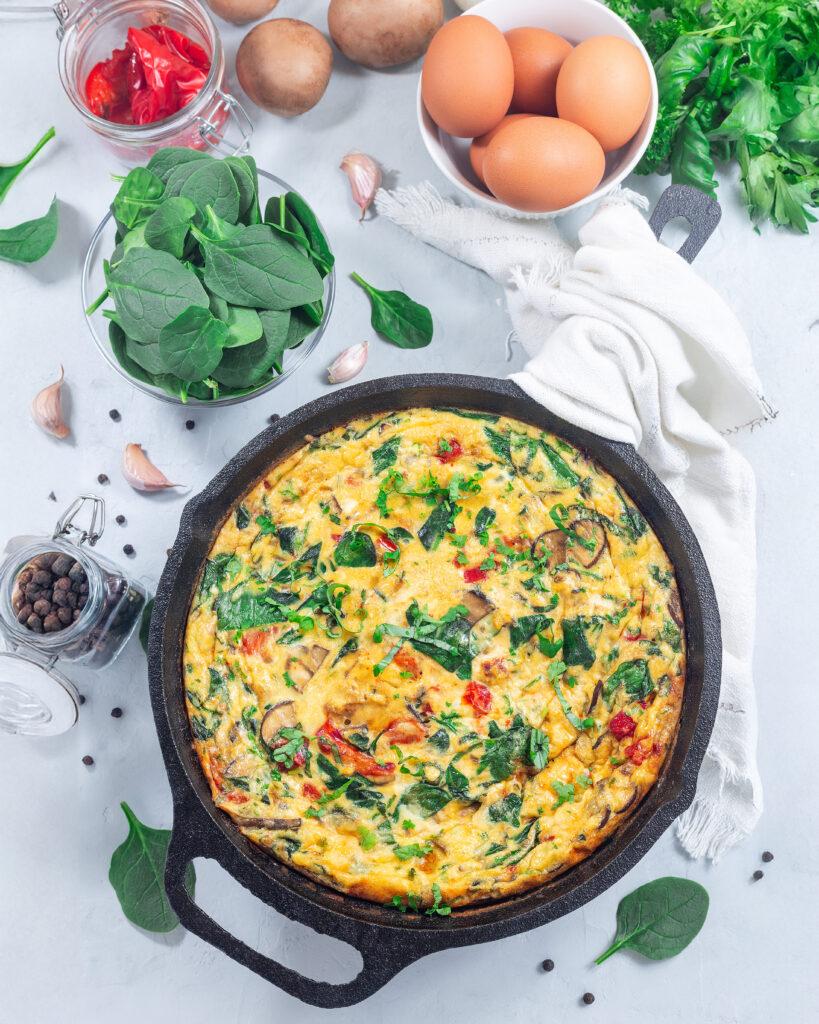 2. Omelette aux épinards, poivrons rôtis et chèvre