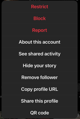 Coupez tout contact mais gardez à l’esprit que les personnes “cools et branchées” ne se rabaissent pas à bloquer. Contentez-vous juste de supprimer et de restreindre. Rendez-vous sur le profil de votre ex, pour la dernière fois, et désabonnez-vous. Ensuite, cliquez sur les trois points horizontaux en haut à droite de son profil puis sélectionnez les options “retirer le follower”, “masquer votre story” et “restreindre”. Vous voudriez peut-être faire de même avec les amis de votre ex. Si vous voulez aller plus loin, faites également le ménage dans vos messages (et votre galerie). Ça vous évitera, dans un moment de faiblesse, de retourner lire vos conversations pour vous remémorer vos souvenirs ensemble.