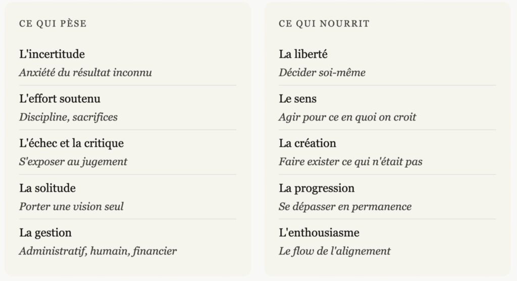 Ces notes amères sont réelles. Elles expliquent pourquoi beaucoup associent entreprendre à une forme de souffrance ou de sacrifice.