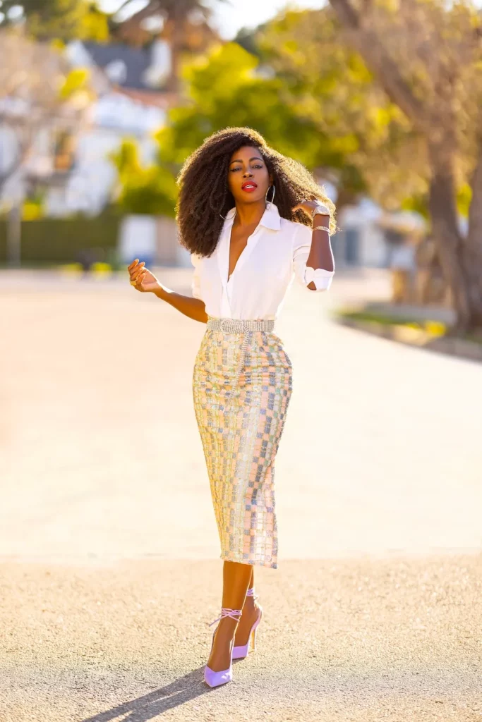 Son objectif n’est pas que ses followers copient exactement ses looks, mais plutôt qu’ils s’en inspirent. Elle mélange ses propres créations avec celles d’autres designers, africains ou non, ainsi qu’avec des pièces vintage ou bon marché.