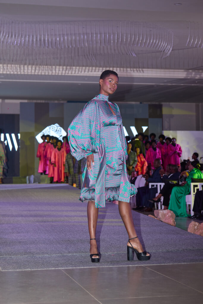 Vient ensuite l’ultime défilé, conçu comme une pièce de théâtre. Les mannequins incarnent tour à tour les quatre peuples principaux du Congo : habillées par la marque Ssaül Couture. L’intrigue met en scène un prince invité à choisir son épouse parmi les représentantes des à quatre grandes tribus du Congo. Il n’en choisit aucune, un parti pris artistique qui souligne que le Congo tire sa force non d’une singularité, mais de la complémentarité de ses peuples et leurs différences.