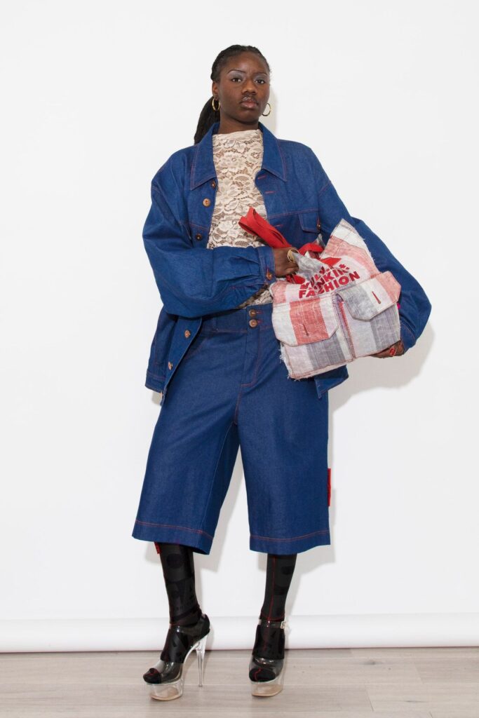 De Lagos à Dakar, de Kinshasa à Abidjan, les créateurs repensent le denim et les matières originelles dont il s’est inspiré. Il est découpé, frangé, patchworké, teint à l’indigo, transformé en volumes sculptés, vestes d’atelier, robes drapées ou manteaux longs et droits.