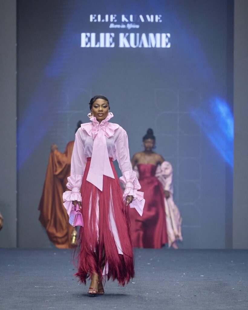 On l’a retrouvée lors de la Fashion Week d’Abidjan sur les silhouettes d’Elie Kuame, La Maison Kantys, Ehiwoman, lors du Mali Mode show avec Kumi ou dernièrement à la Fashion Week de Nairobi. Sur le continent africain, le rouge cerise trouve un écho tout particulier. Il rappelle à la fois la terre, le feu, la fête et le rituel, tout en s’inscrivant dans une esthétique très contemporaine.