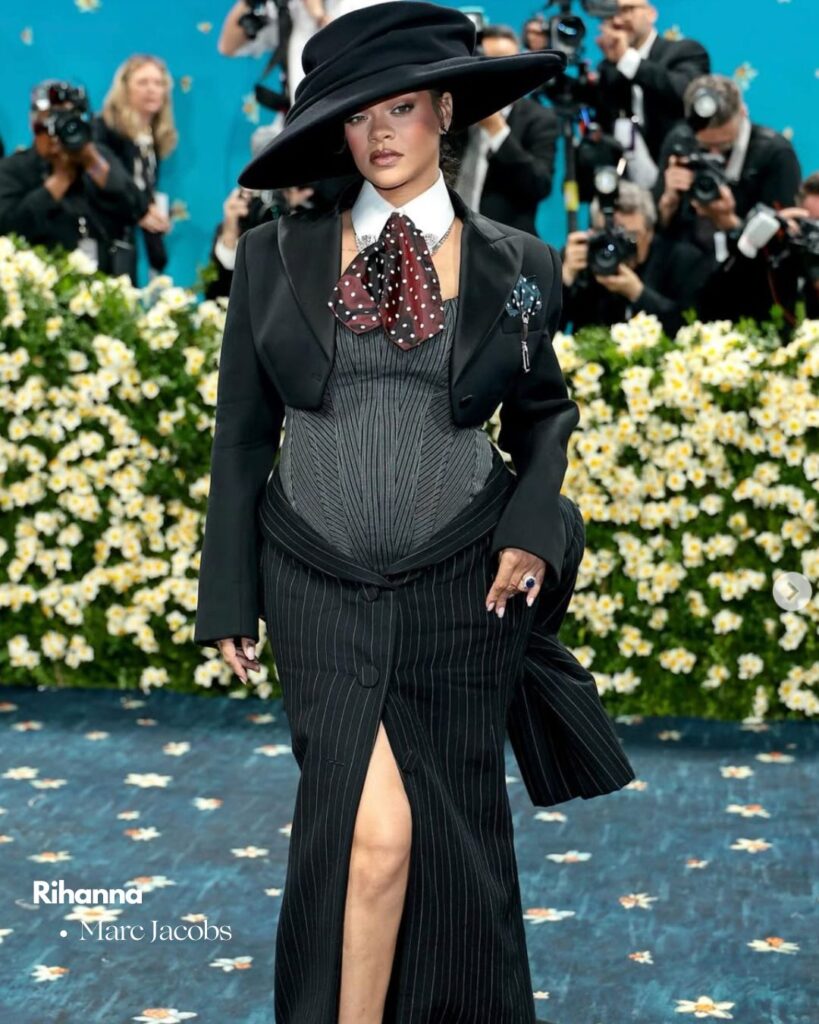 • Rihanna a ému en confirmant sa grossesse dans une robe costume Marc Jacobs, alliant maternité et tailoring masculin.