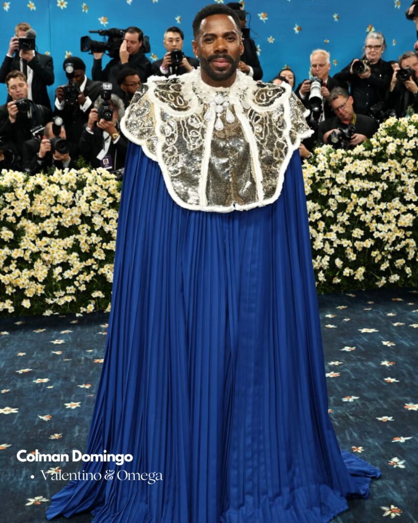 • Colman Domingo, co-président de l’événement, portait une cape bleue impériale signée Valentino, rendant hommage à l’icône André Leon Talley.