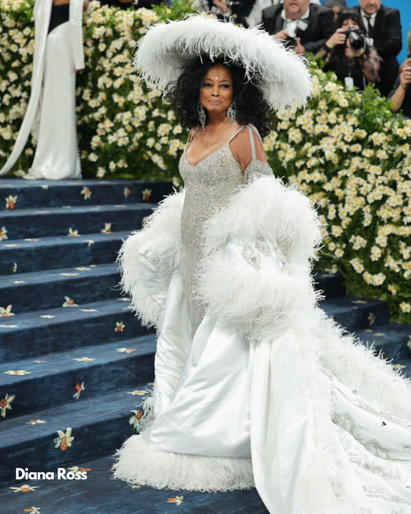 • Diana Ross, légende vivante, a marqué son grand retour au Met Gala drapée dans une cape argentée brodée des noms de ses descendants, dans une célébration poétique de la transmission.