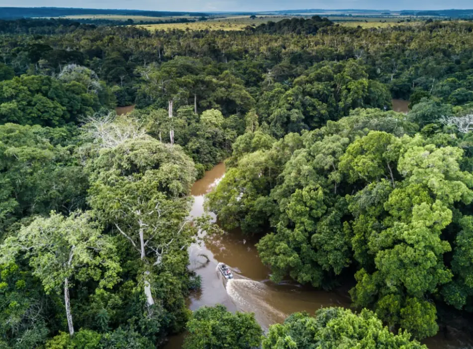 Situé dans une région encore largement intacte d’Afrique centrale, le lodge se trouve au milieu d’un territoire où la forêt s’étend à perte de vue. L’accès demande un peu de patience — un vol vers l’intérieur du pays puis plusieurs heures de piste — mais l’arrivée marque immédiatement le début d’une expérience à part.
