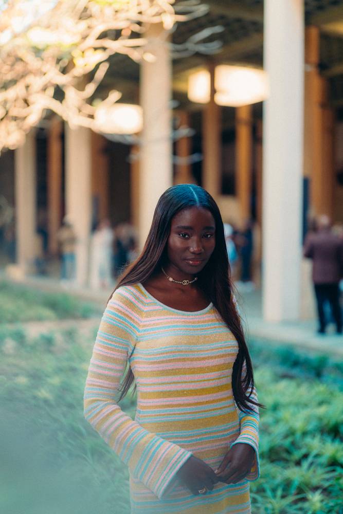 La collection présentée révélait une modernité vibrante : des silhouettes fluides inspirées du vestiaire citadin de Dakar, des broderies aux motifs revisitant l’héritage textile africain, et une palette chromatique rythmée par des tons ocres, safran et bleu profond. Chaque détail incarnait cette harmonie entre tradition et modernité, entre Paris et Dakar.