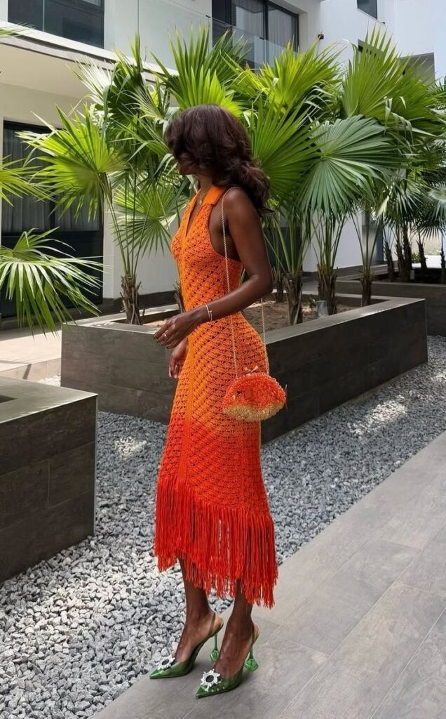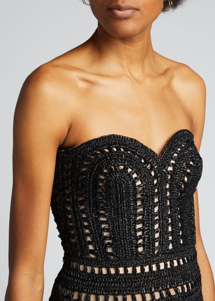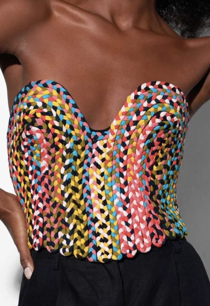 Ici, le crochet se fait sculptural : brassière structurée façon corset, pantalon ajouré en superposition ou pièce couture inspirée des défilés. Un vrai terrain d’expression pour les plus modeuses.